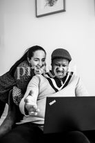 Couple at home watching something on a laptop