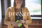 Smiling person holding Post-it notes